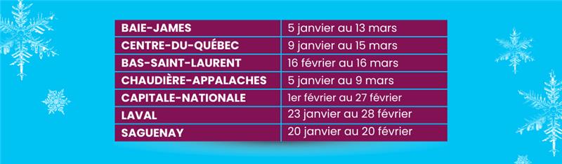 LES DATES DU DÉFI VARIENT D’UNE RÉGION À L’AUTRE